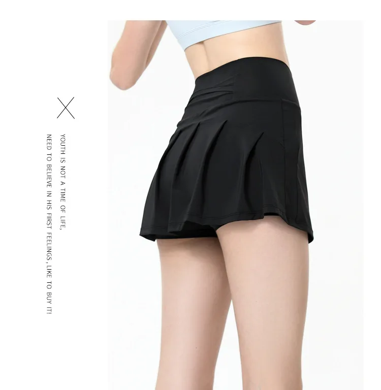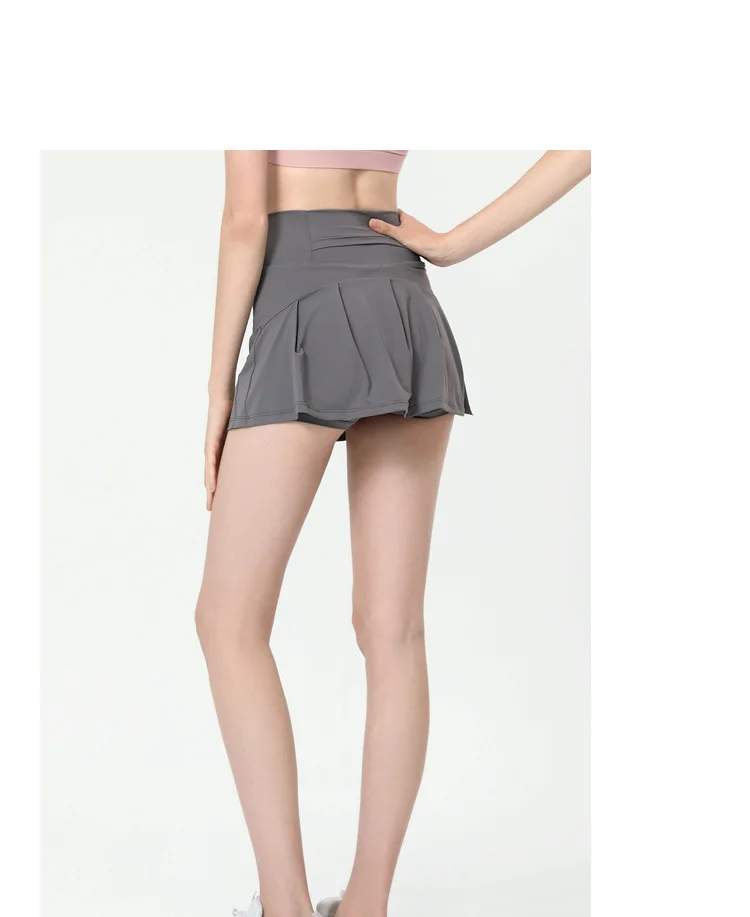 Summer Women Fitness Sports Short Skirt Yoga Running Shorts Loose Anti Exposure Pleated Skirt Tennis Gym Sportswear With Lining