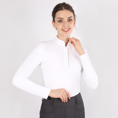 New Style Women's Mesh Breathable Equestrian Long Sleeve Top Lightweight Riding Stand Collar Rider Shirt