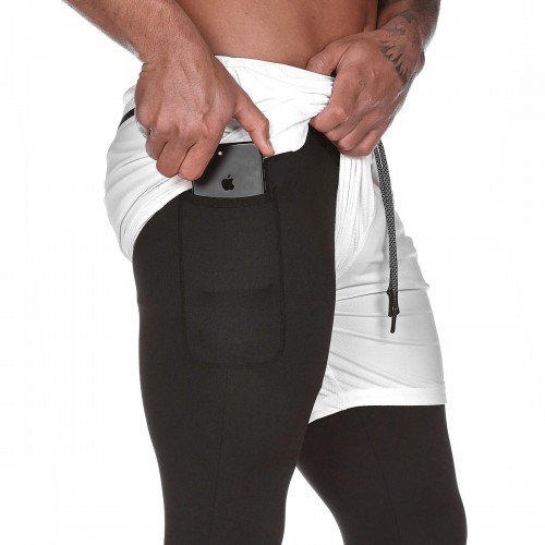 Men's Comprehensive Training Cropped Pants Double-layer Fake Two-piece Slim Leggings Jogging Exercise Basketball Sportswear Men