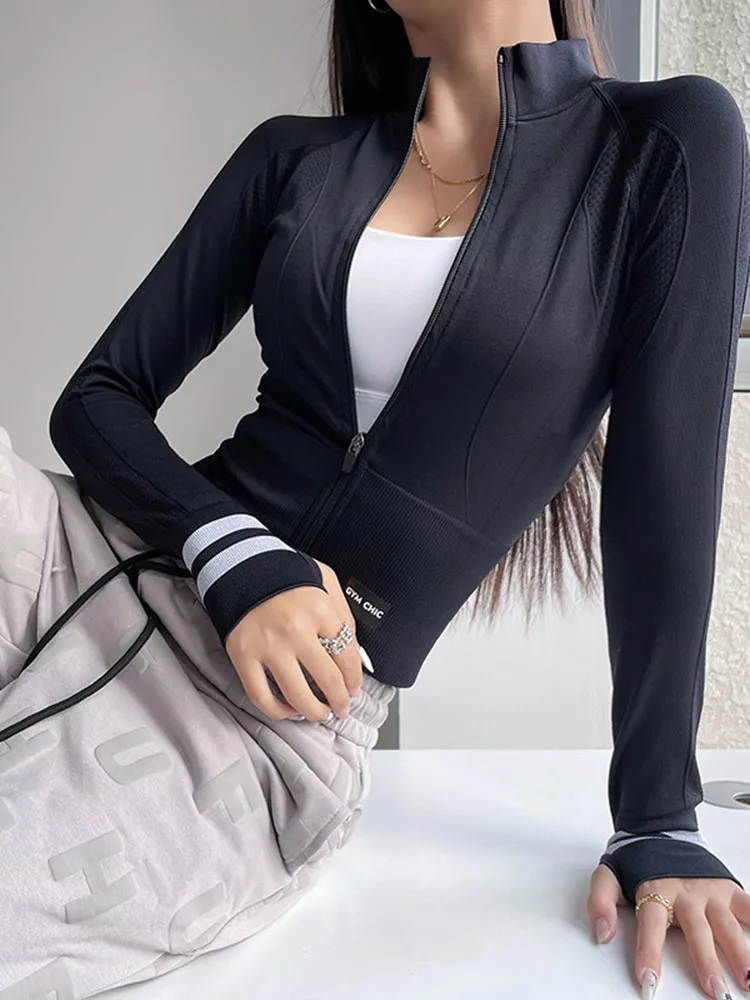 Summer Thin Yoga Wear Women's Running Sportswear Tops Zip Up Sweatshirt Workout Fitness Clothes Cardigan Slim Tight Jacket Trend